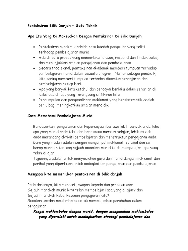 Pentaksiran di dalam bilik darjah mengikut prosedur yang ditetapkan tidak dapat dilaksanakan sepenuhnya. Maklumat yang diperolehi hendaklah digunakan serta merta dalam memperbaiki pengajaran dan pembelajaran agar pelajar dan guru sama-sama memperolehi manfaat daripadanya Contoh. Setelah anda mengikuti pelajaran pada bab ini adalah diharapkan anda akan dapat.
